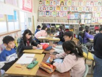 採点・集計が終わり、テストがもどってきました。みんなで見直して、確認をしています。