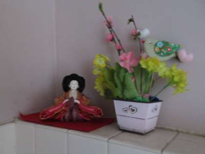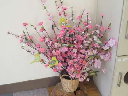 立春を過ぎ、校内に飾られているお花が、ひな祭りバージョンに変わりました。