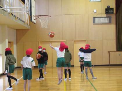 バスケットボールの学習です。うまくパスがつながり、シュートまで持ち込めるようになってきました。