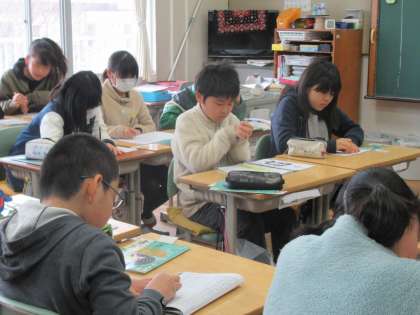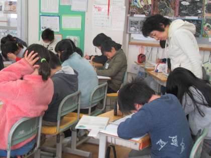 落ち着いて、丁寧に書いています。たくさん書いて手が疲れたのか、マッサージしてほぐしている子もいました。