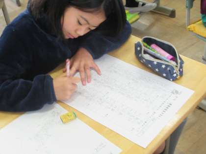 都道府県名テストをしています。とっくに書き終えて自信満々な子もいれば、最後まで入念に考えている子もいました。