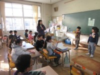 たれまくの飾りを作り終わって、お掃除をしています。1年生でも、ほうきやちり取りを上手に使っています。