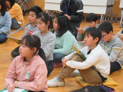 続いて、実際に被災され、今は語り部として活動されている方のお話を伺いました。生々しい体験談に、子どもたちは真剣な表情で聴き入っていました。
