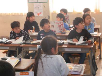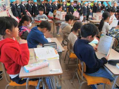 年長さんたちが参観する中で、先輩らしく落ち着いて学習しています。