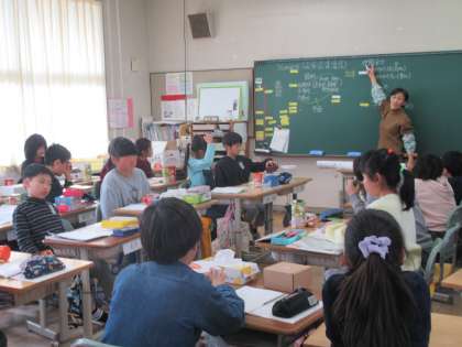 立体の学習に入りました。面や辺に着目して、仲間分けをしています。