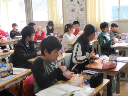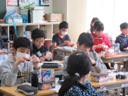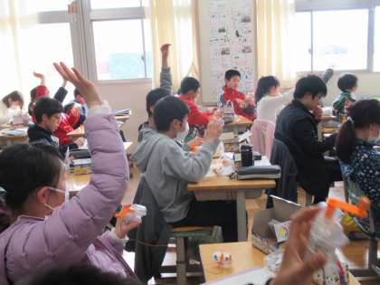 手回しで発電しています。条件をそろえるために、回すのは50回。正しくできるかな?