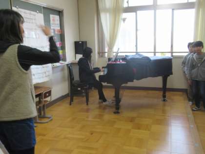 音楽室から、美しい歌声が聞こえてきます。6年生が、卒業式の歌を練習しているのです。毎朝の積み重ねで、音程が正しくとれるようになってきました。