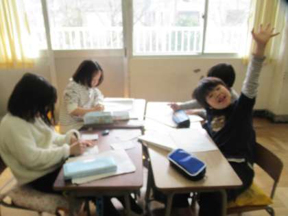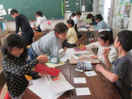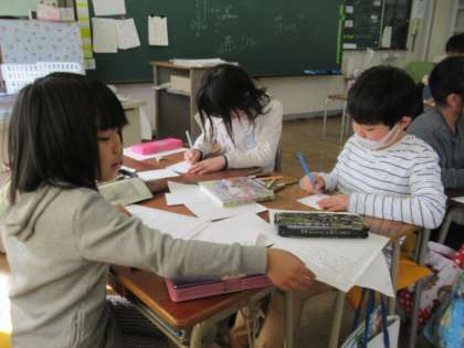 楽しげな声が聞こえてきます。班の仲間と「2年生カルタ」を作るのが、楽しくてしかたないようです。