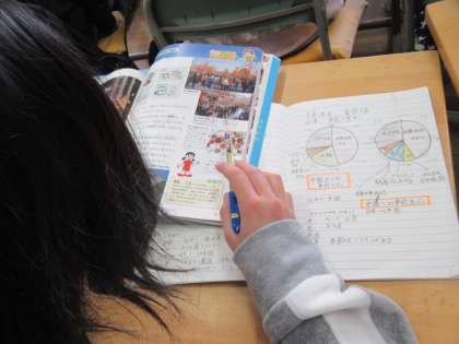 世界に目を向けて学習してきた最後のまとめとして、自分が関心をもった国について、調べてまとめています。