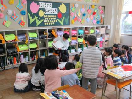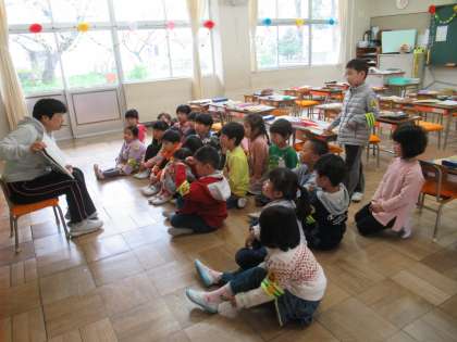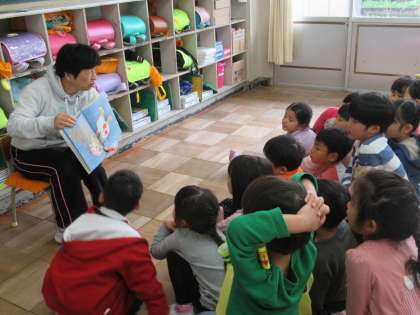 先生が、絵本を読んでくださいました。食い入るように挿絵を見つめ、耳を澄ませて聞いています。