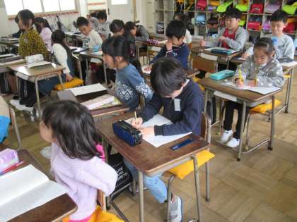 算数のノート。ひとます分は日付の欄になるので、赤鉛筆で線をひきました。先生の説明を聞いて、ただ1本赤線をひくだけなのですが、子どもによっては受け取り方が違い、消したりかいたり。子どもに伝わる言葉って、難しいですね。