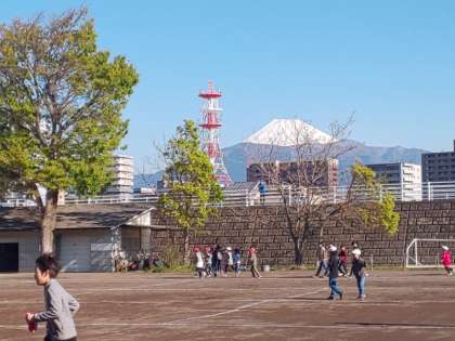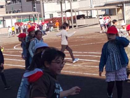 やっと晴れました。たくさんの子どもたちが、校庭で元気に体を動かしています。