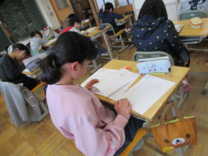 算数のチャレンジテストに取り組んでいました。文章で考え方を表記する問題もあり、じっくり考えている子どもが多かったようです。
