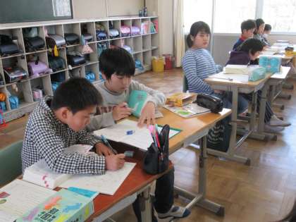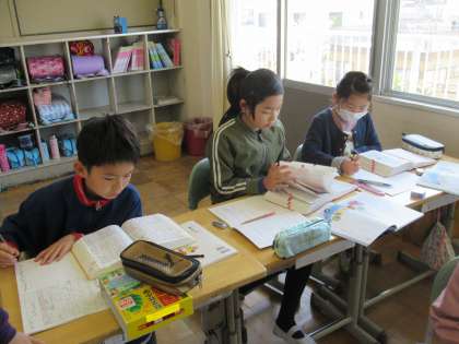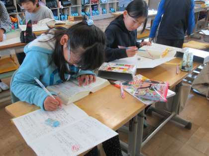 物語に出てくる言葉の意味を、国語辞典で調べています。