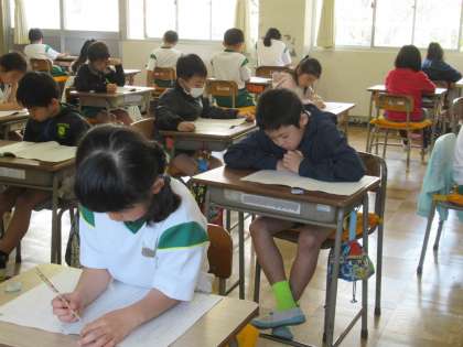 6年生の学力学習状況調査に合わせて、2〜5年生は、国語と算数の標準学力調査を実施し、前学年までの学力の定着の具合を調べています。