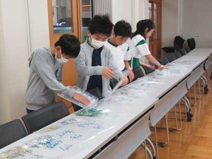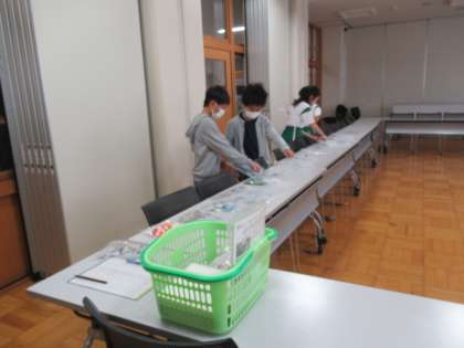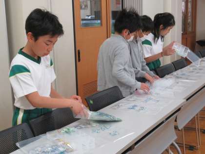 福祉委員会の5,6年生が、各教室からベルマークを集めてきてくれました。種類ごとに分類し整理していきます。