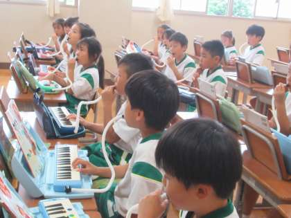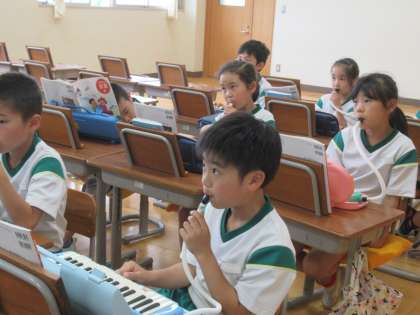 鍵盤ハーモニカで、正しい音程とリズムを演奏できるよう、練習しました。