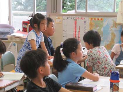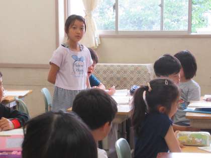 生き物の擬態に関する説明文を学習しています。友だちの発言に、顔を向けて聴いたり教科書で文章を確認したりしながら聴ける子どもが増えてきました。