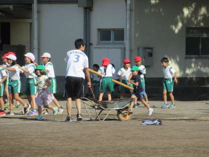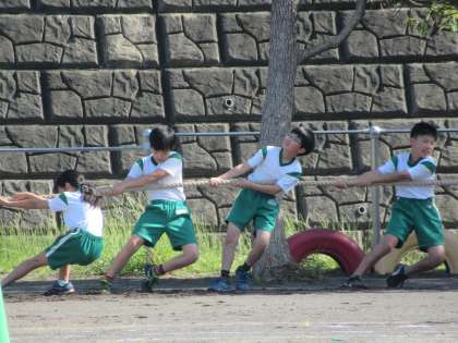 運動会まで、あと二日。子どもたちは朝から校庭に出て、団競の練習をしています。先生方も、練習に加わったりグラウンド整備をしたり、大忙しです。