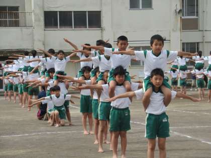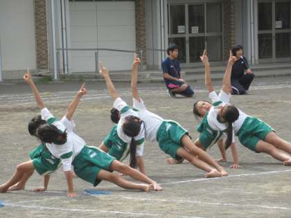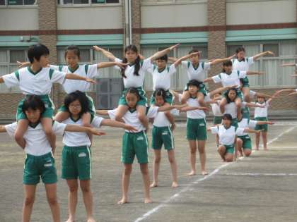 組み体操初体験の5年生も、練習を積み、技がきまるようになりました。