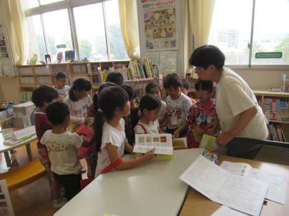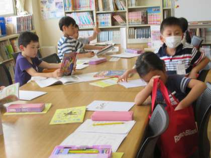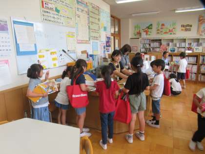 学校司書の先生に、お世話になっています。お目当ての本は、見つかったかな?