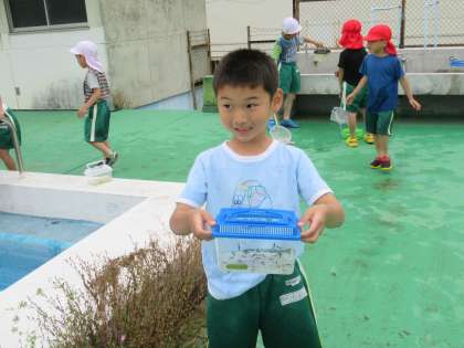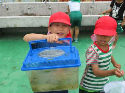 「先生、見て見て!」取れた生き物を、自慢げに見せてくれました。