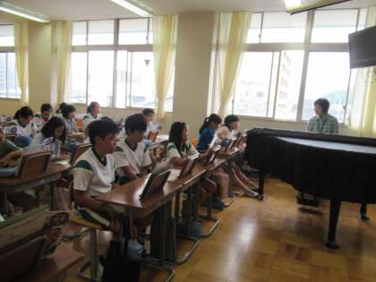 合唱の練習をしています。低音部を少しずつ分けながら、歌ってみました。