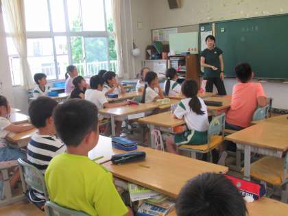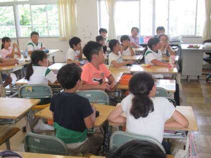 みんなで決めた学級目標を、どのように掲示するか。色やデザインを話し合っていました。