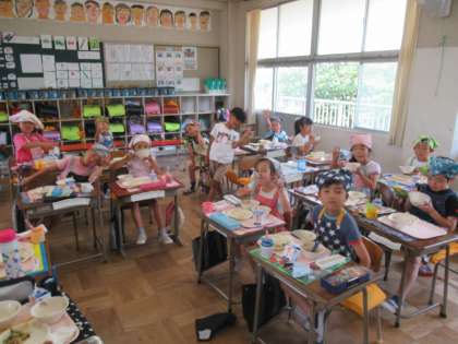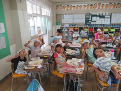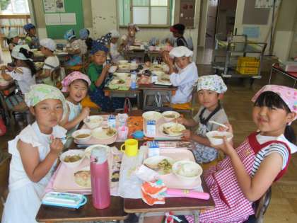みんなで食べると、おいしい給食が、なおさらおいしく感じます。