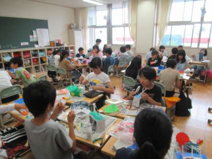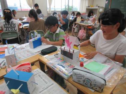 箱の中には針金のしかけがあって、動きのある作品になります。