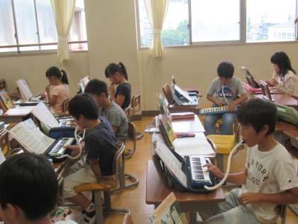 打楽器担当が決まり、リコーダーと合わせてみました。