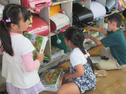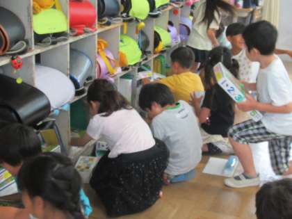 算数の学習が終わって、算数ボックスをロッカーにかたづけました。丁寧に中身を整理してしまっていますね。