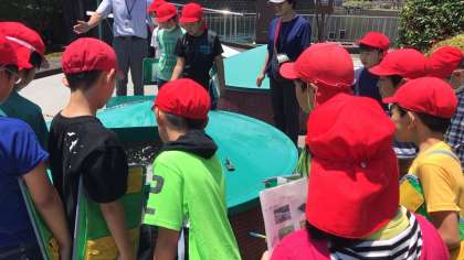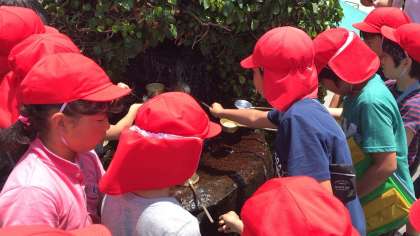 湧いている水を見た後、実際に飲ませてもらいました。とても冷たく、みんな「美味しい!」と感動しています。