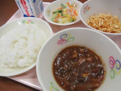 今日は、メキシカンポークソティが出ました。子どもたちに大人気のメニューです。