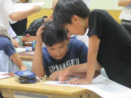 お散歩タイムには、友だちと交流して、自分の考えとのつながりや違いを考えました。