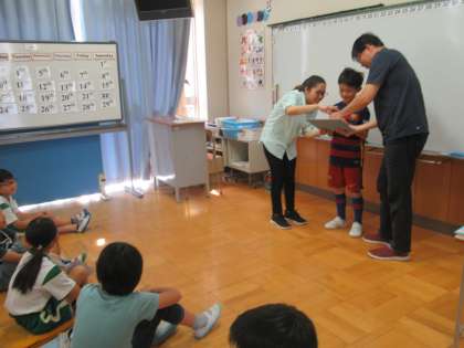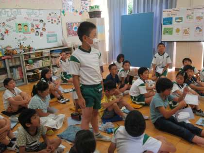 友だちの名前当てゲームで、アルファベットを学習しています。