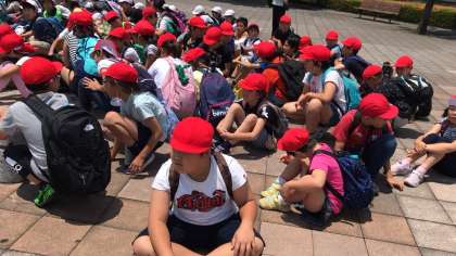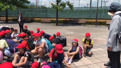 今年は晴れているので、外の芝生広場で仲良く食べます。