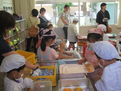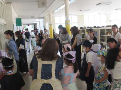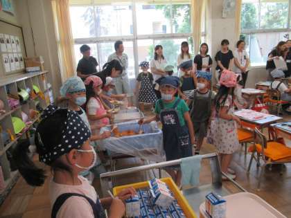 今日は、1年生の保護者対象に、給食参観・試食会を開催しています。
