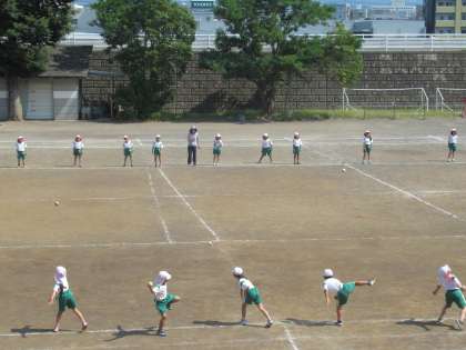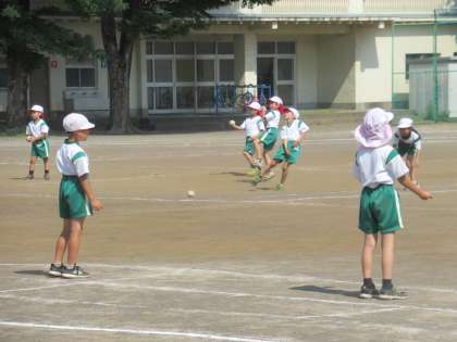 ボール投げの練習をしました。真っ直ぐ遠くまで投げられたかな?