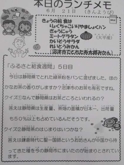 今日の給食(ふるさと給食週間)