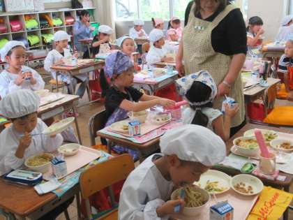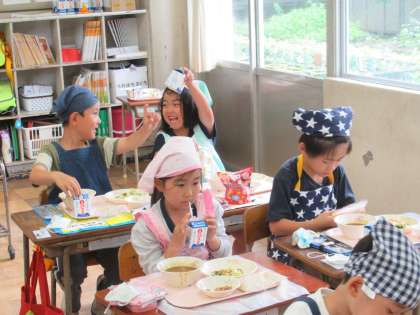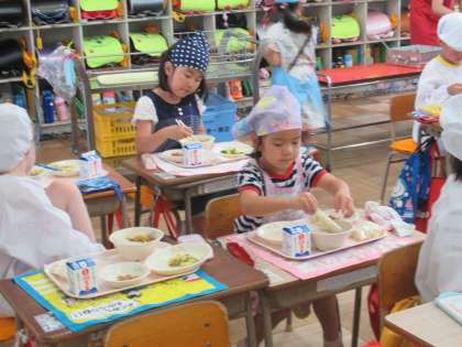 カレーソースと混ぜて食べるソフト麺がおいしくて、幸せそうです。