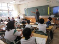 「ゆかいなお面」にするために、どんな工夫をすればよいか考えながら、アイデアスケッチを描いています。みんな真剣です。