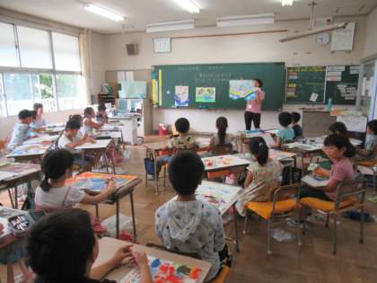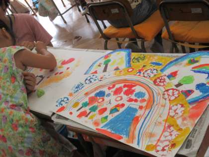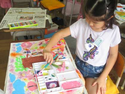 画用紙の上には、不思議な卵から飛び出したすてきな物がいっぱい!