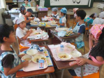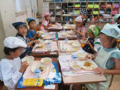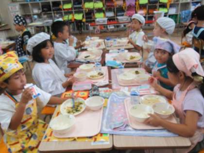 おしゃべりしながら食べると、いっそうおいしくなりますね。でも、しゃべり過ぎると遅くなっちゃうから、気をつけて!