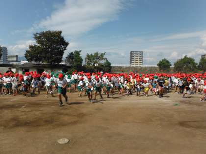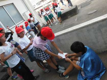 いよいよ始まりました。テレビでおなじみの「逃走中」の四小バージョンです。今回のミッションは、隠れている8人の計画委員を見つけてサインをもらい、ビンゴを完成させることです。