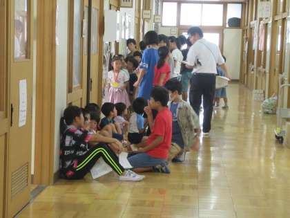 6年生が、着替えを手伝ったり、「静かにしてね」と優しく注意したりする姿がすてきです。