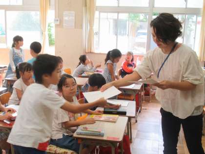 書き初めの練習を始めます。先生が、各自の名前まで入ったお手本を分けてくれました。