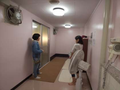 キャンプファイヤーを無事終え、お風呂に入り始めました。先生たちが、お世話についてくれています。