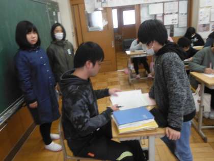 小学校生活を振り返って、卒業文集に載せる原稿を書いています。何をテーマに書くのかな?