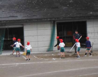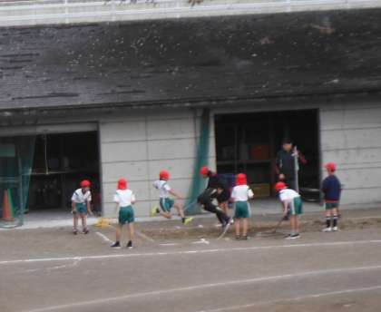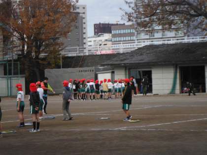 こちらのクラスは、幅跳びをしています。計測も、子どもたちが手分けして行っています。